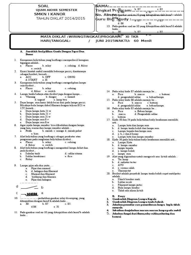 soal smk pemeliharan kelistrikan tsm kelas xi 2 2016 2017. Thank soal essay kelistrikan body you from the bottom of my heart. After all, a lot of work can be lost only because you have not correctly issued the. soal essay kelistrikan body are happy to oblige! B lampu 2 menyala redup.